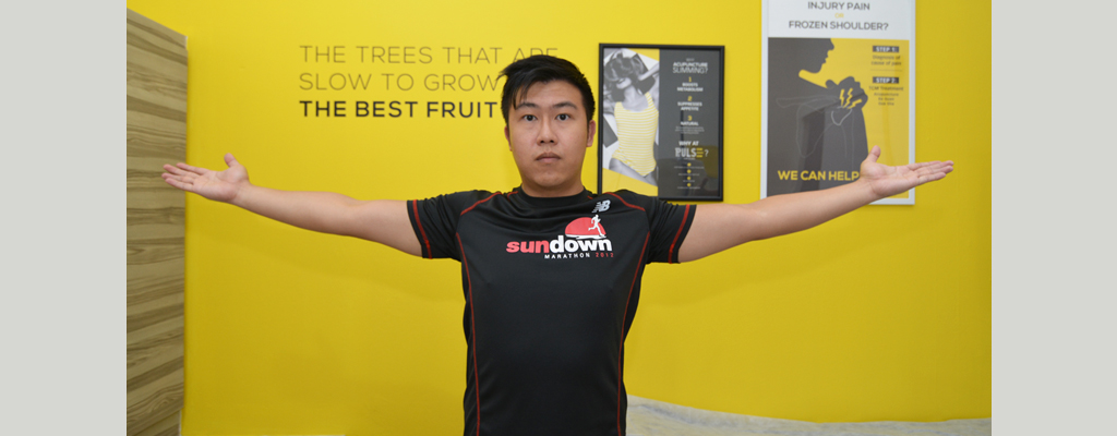 • When breathing out, relax the shoulder blades, while still maintaining the arms above shoulder level. That is 1 repetition.