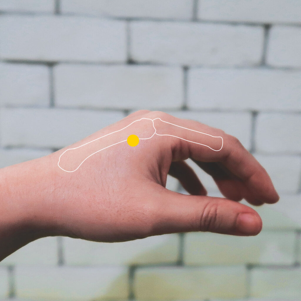 It is located at the radial side of the index finger, in a depression just distal to the second metacarpal joint.