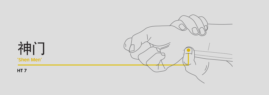 Location: located at the wrists. With your palm facing up, bend your wrist to see the crease. This acupoint sits on the outer end of the crease (about one-fifth of the wrist from the pinky finger side). Feel for a hollow at the base of the pisiform bone (where the palm of the hand meets the outer edge of the wrist).