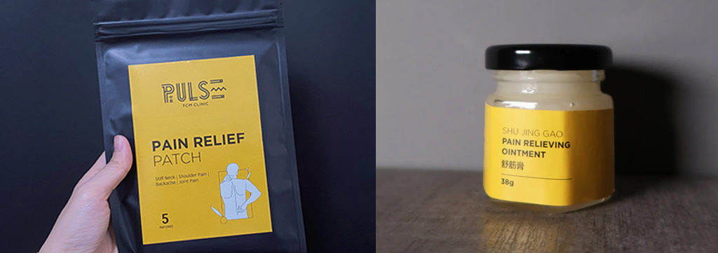 You can apply some 舒筋膏 (Shu Jin Gao – pain relieving ointment) or paste some pain-relief patches to the area of pain. This will help to increase blood flow and unblock stagnated Qi, thereby relieving pain.