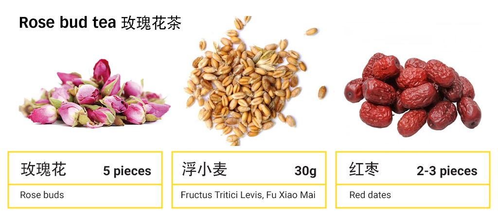 Tea: Rose bud tea (玫瑰花茶, Mei Gui Hua Cha)