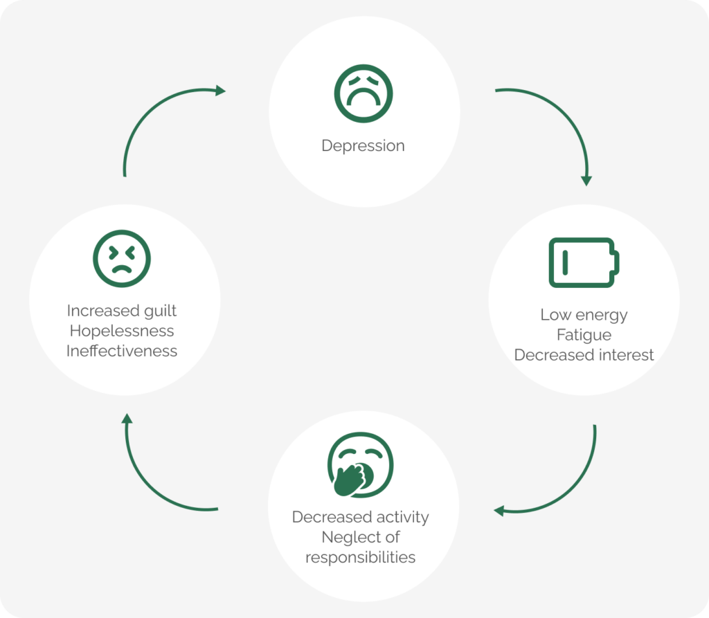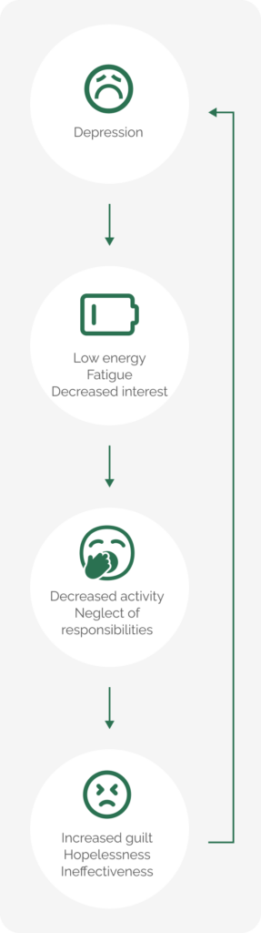 When experiencing the symptoms of depression; such as low mood, lack of energy and motivation; a natural tendency is to become less active, neglect daily responsibilities, or reduce going out or engagement in activities (e.g. exercising).