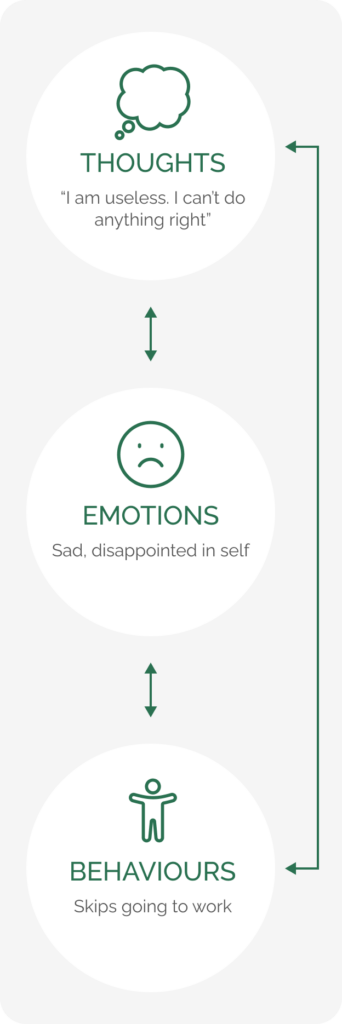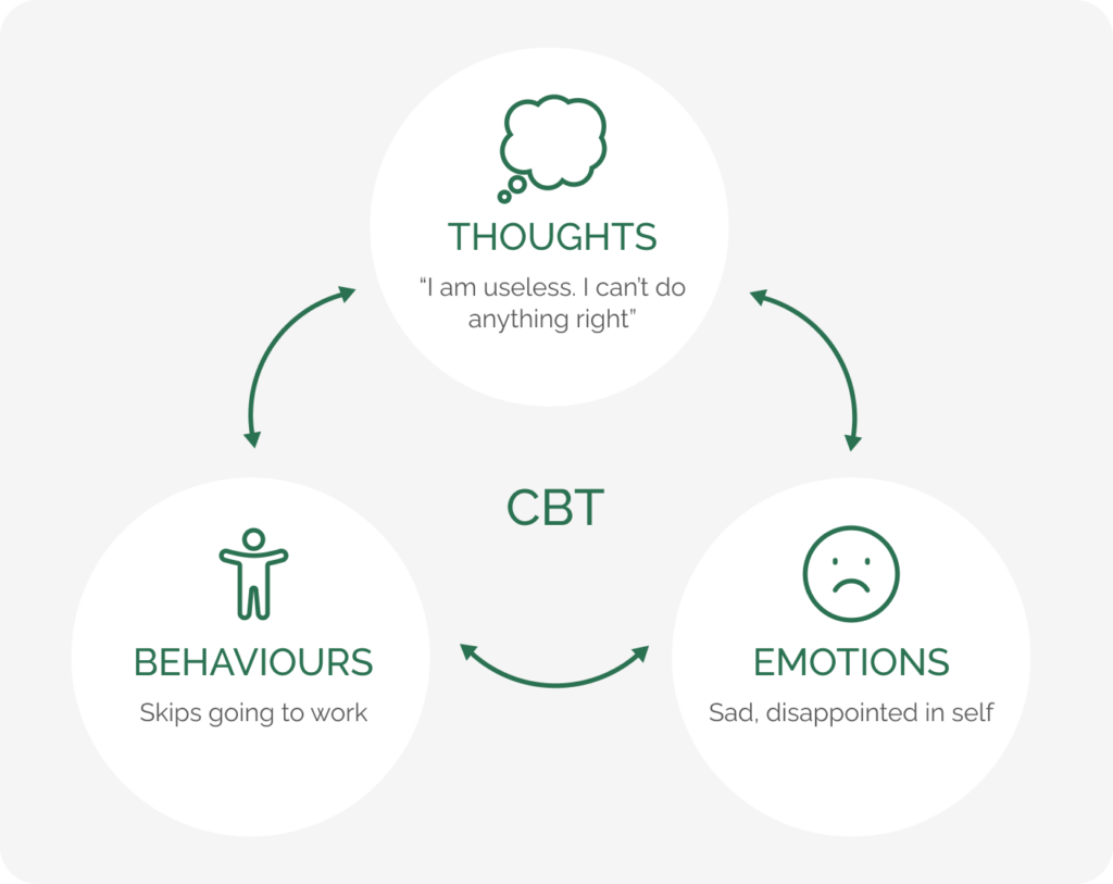CBT helps individuals to identify and change unhelpful thoughts and behaviours to more realistic, helpful ones. Changing these patterns usually leads to improved mood and coping.