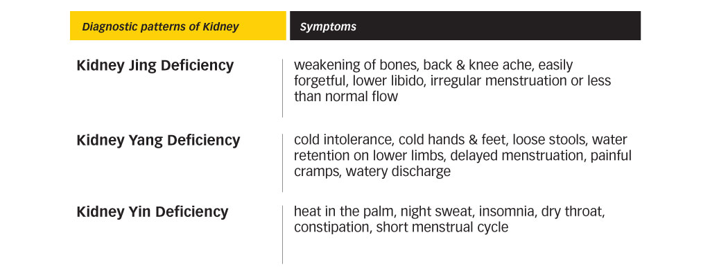 The kidney is like the ‘powerhouse’ of the body. It stores reserve energy inherited from their parents at conception. Hence it is regarded as the ‘congenital constitution’. An individual’s growth, maturation, and reproduction rely on the energy from the kidney. Kidney energy may be low since birth, but it is also progressively depleted with age. It is particularly vulnerable to exhaustion due to factors such as chronic stress, overwork, insufficient fluid intake, multiple pregnancies, overly active sex life, or long-term illness.